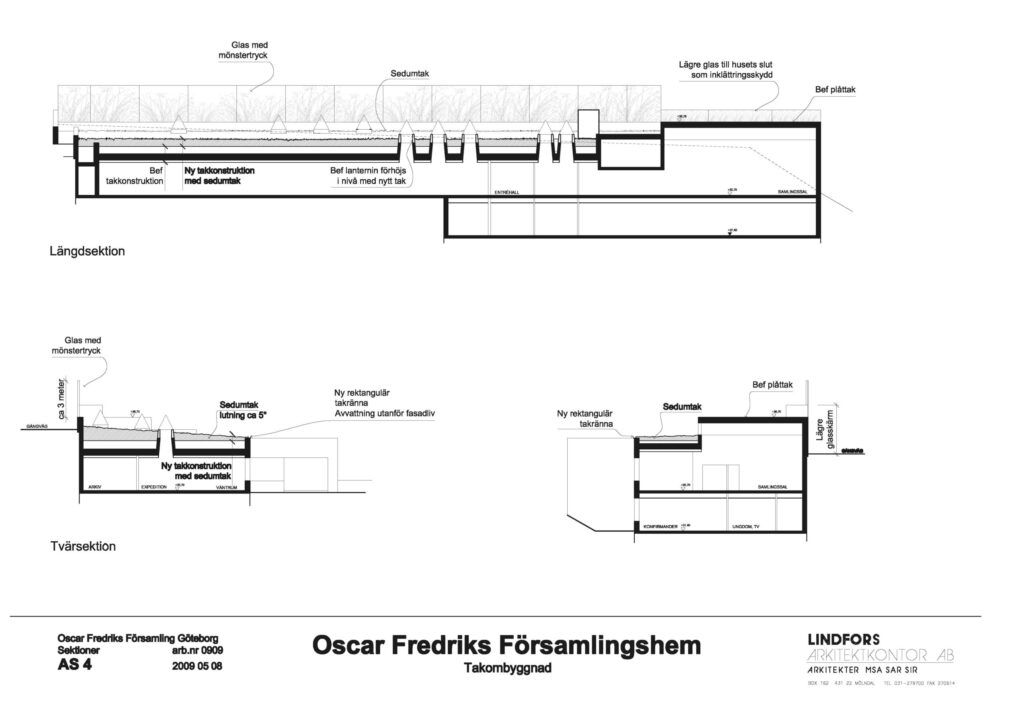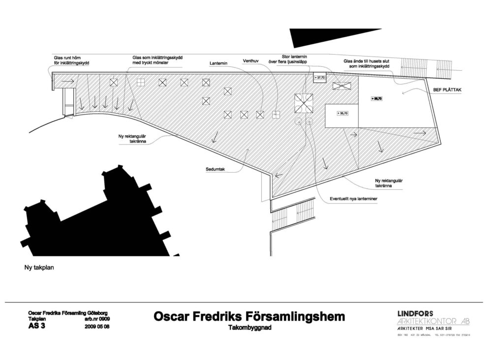 Lindfors Arkitektkontor vann ett parallellt uppdrag 2009 om takombyggnad för Oscar Fredriks församlingshem i Göteborg.