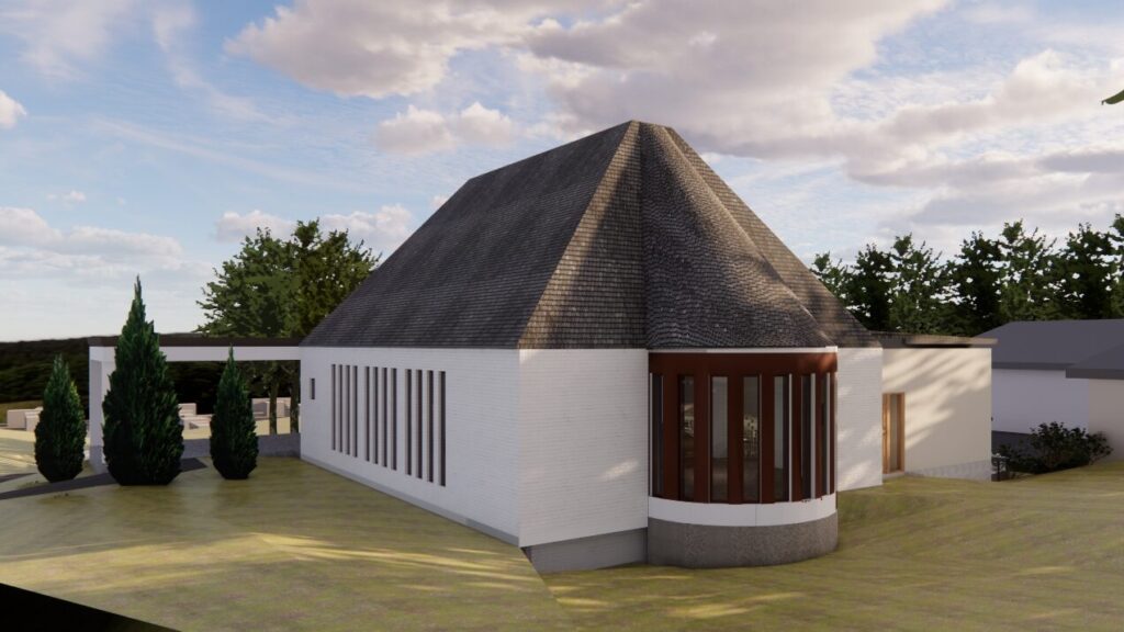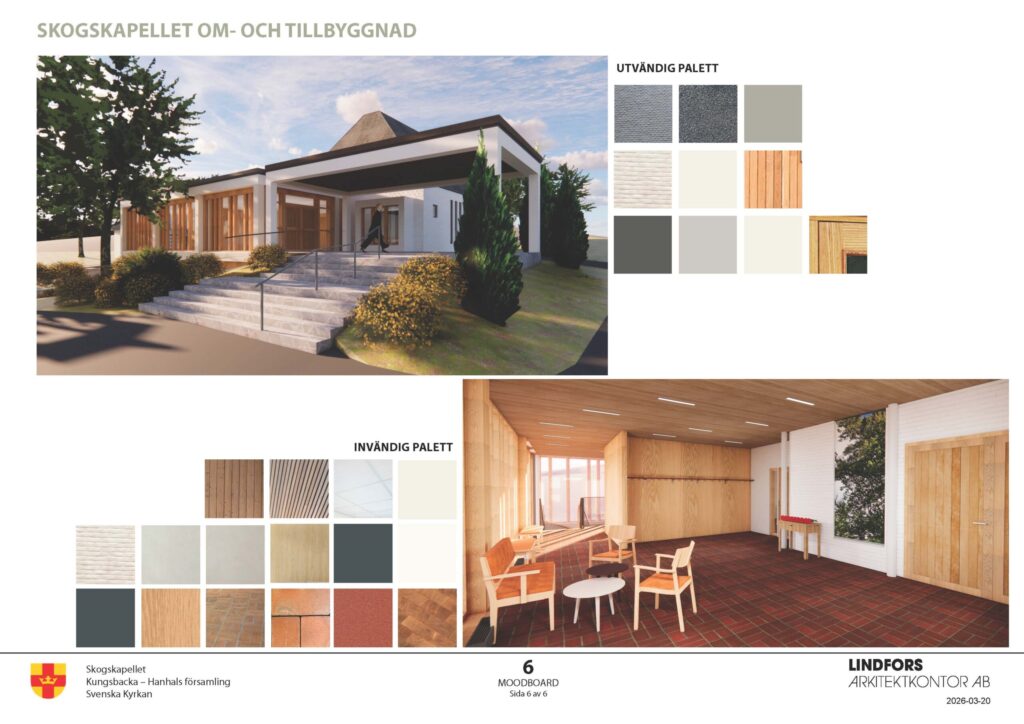 Lindfors Arkitektkontor har tagit fram förslaget för om- och tillbyggnad av Skogskapellet i Kungsbacka. Målet har varit att både bevara och