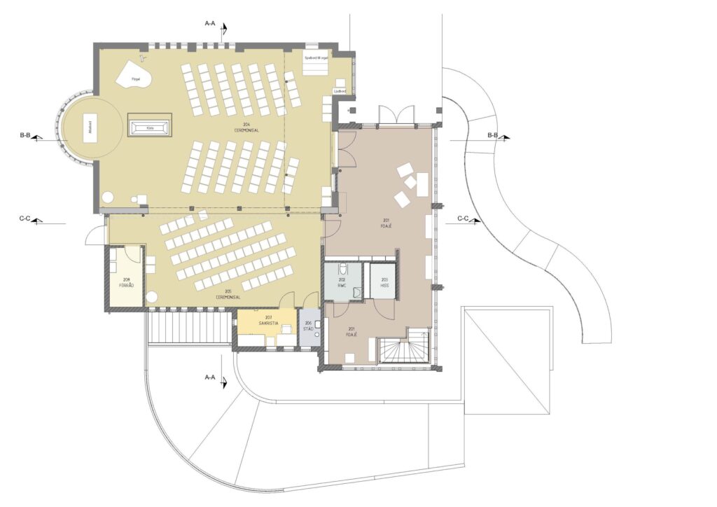 Programmässigt har utgångspunkten varit att utöka ceremonisalens kapacitet och att skapa en välkomnande och tillgänglig
